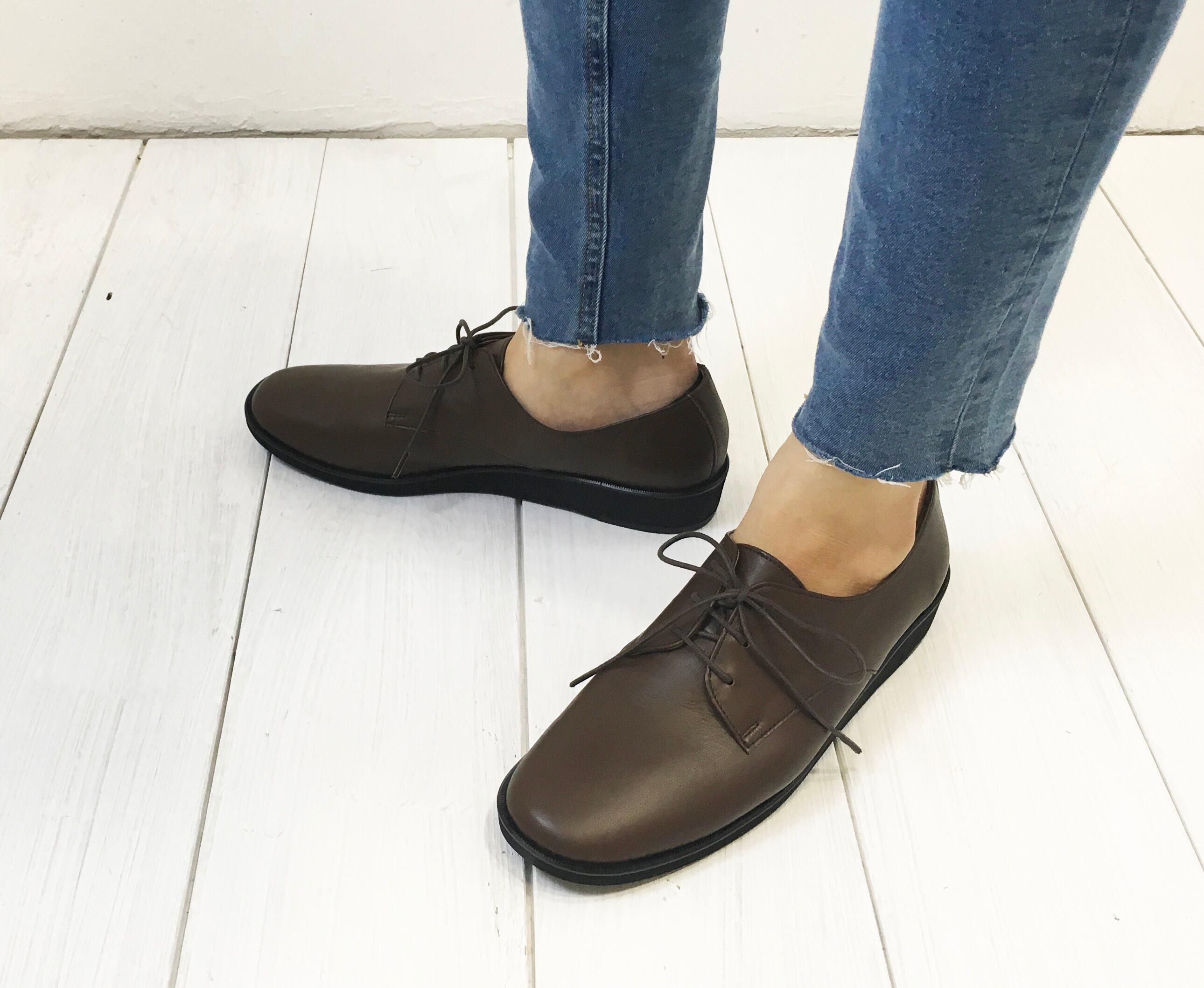 セメンテッド製法ですが、フィット感と歩きやすさはやはりアシオト。レースアップですが、紐は甲の高い部分で結ぶので、靴べらがあれば紐をほどかなくてもそのまま脱ぎ履き出来ます。パンツにもスカートにも似合うありそうでないクラシックな雰囲気を持つデザインが人気です。